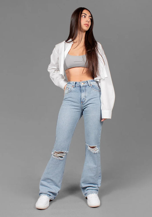 Jean Rígido Flare con rotos para Mujer Tono Claro