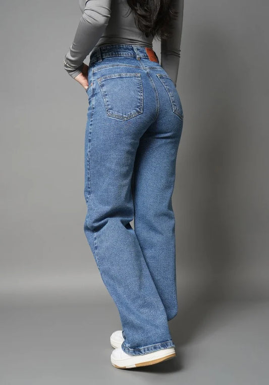 Jean Rígido Wide Leg Baggy para Mujer Tono Azul Medio