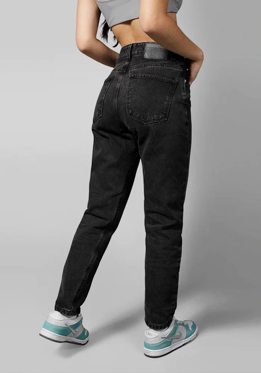 Jean Rigido Mom Fit Para Mujer Negro Mate