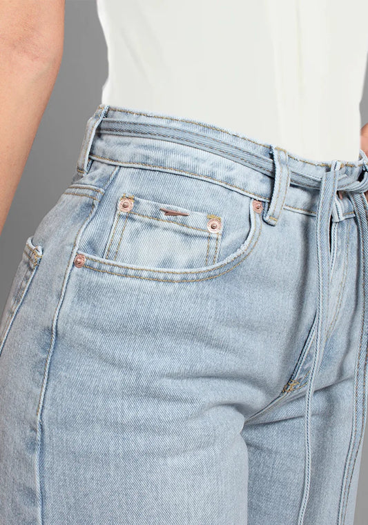 Jean Rigido Wide leg Balloon Azul Claro Cinturón