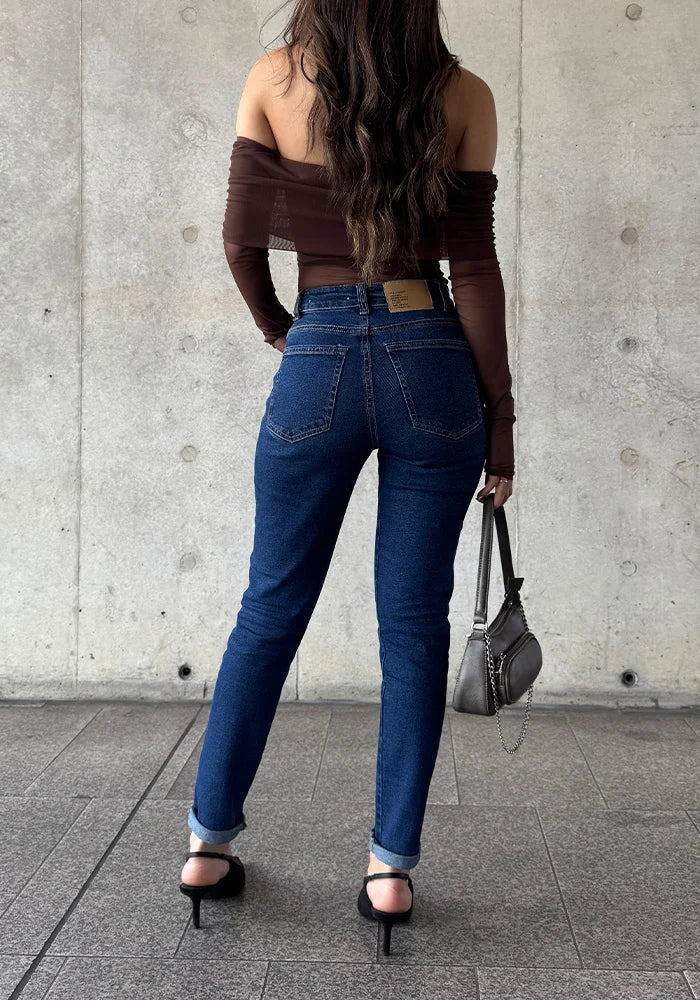No te conformes con lo ordinario; elige la excelencia con nuestro Mom Slim Fit Confort Azul Oscuro para Mujer.